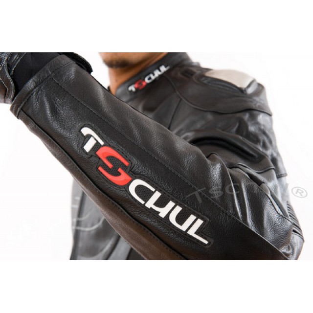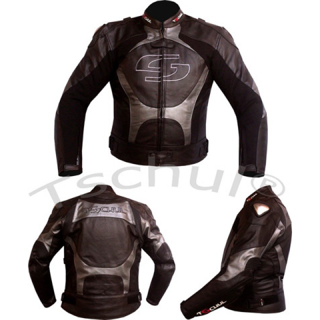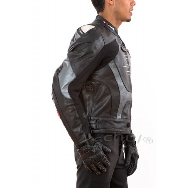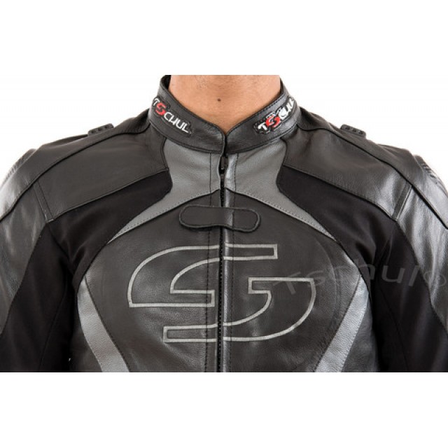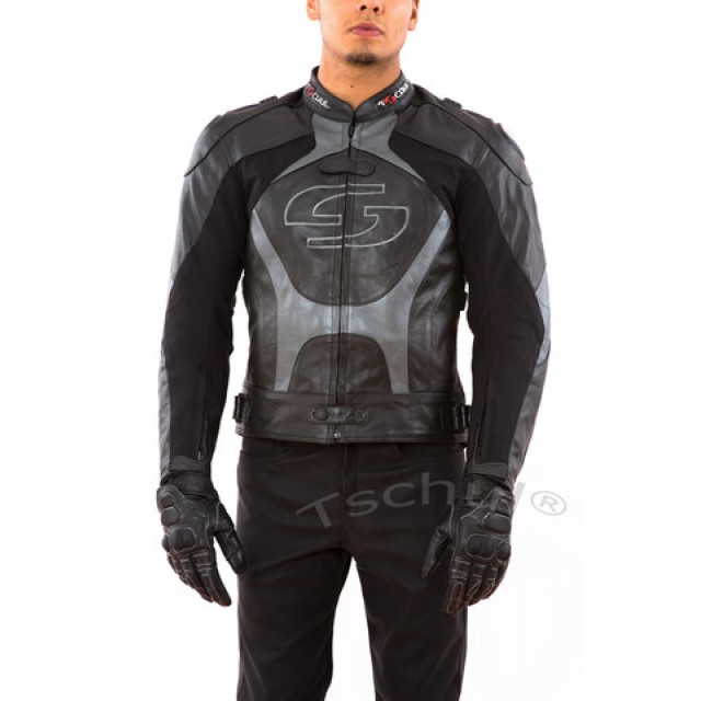 Geaca moto piele Tschul "Carbon" Silver Grey